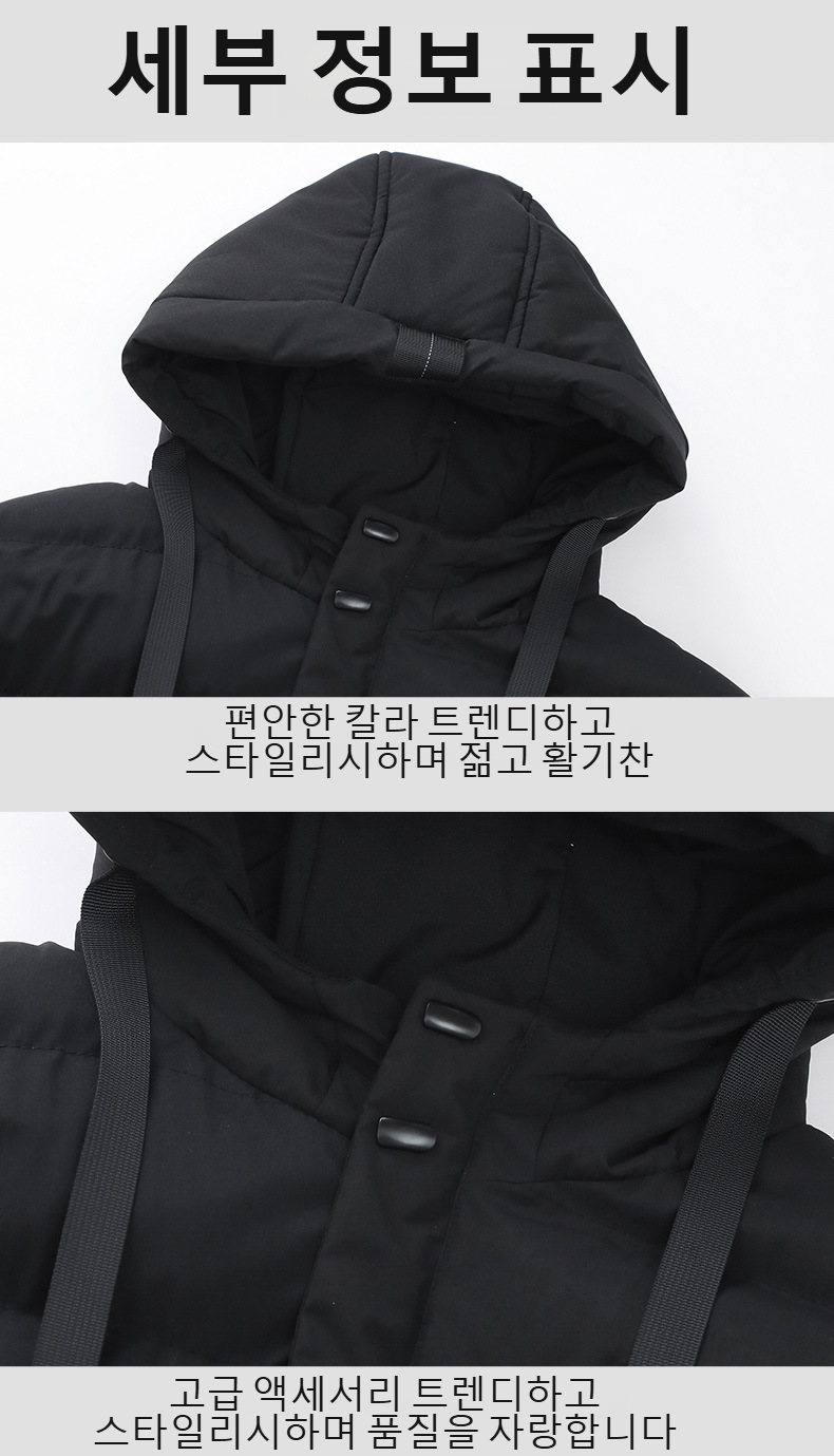 ● 겨울철에도 따뜻하게 착용 가능한 고급 기모 안감으로 보온성이 뛰어나며, 스타일리시한 하프 후드 디자인으로 트렌디함을 동시에 잡았습니다. ● 남성스러운 세련된 실루엣과 넉넉한 핏으로 이너와 레이어드하기 좋아 다양한 코디에 활용도가 높습니다. ● 가벼운 무게감과 활동성을 고려한 패턴 설계로 장시간 착용에도 편안함을 제공하며, 캐주얼부터 비즈니스까지 데일리룩으로 완벽하게 어울립니다. ● 생활 방수 소재를 사용하여 눈이나 비에도 걱정 없이 착용 가능하며, 내구성이 뛰어나 오랜 기간 변형 없이 사용할 수 있습니다.